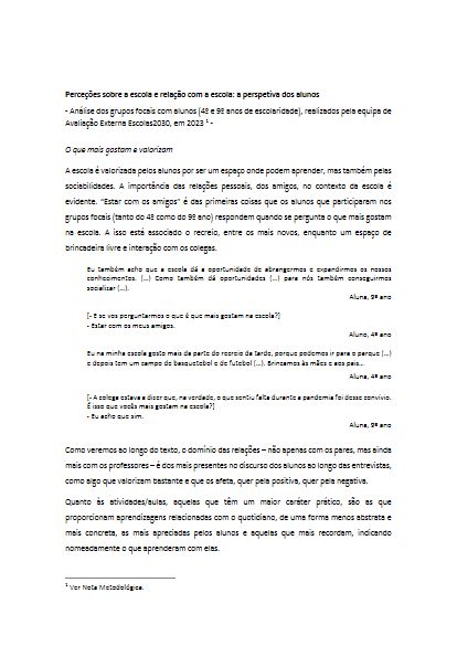 Veja alguns testemunhos, recolhidos pela equipa de Avaliação Externa do programa Escolas2030 em entrevistas e grupos focais.