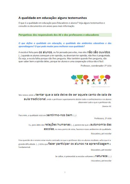 “Depois, a educação de qualidade é muita coisa. Para mim, é uma abordagem integrada e contínua do percurso de cada um dos alunos, garantindo que ele aprenda ao seu ritmo e à sua medida, que possa desenvolver as suas capacidades no seu limite, na sua dimensão. Nem todos somos iguais (…), apostando na diversidade de estratégias (…).”