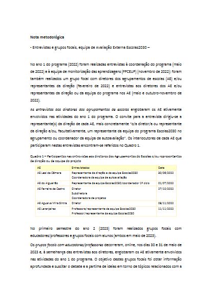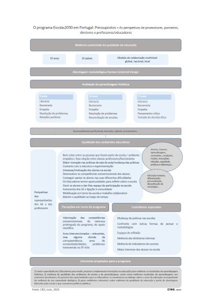 Realizados em 2022-23, as entrevistas e os grupos focais incluíram diretores dos Agrupamentos de Escolas (AE) e/ou representantes da direção, educadores e professores, e alunos (4º e 9º anos de escolaridade), dos AE participantes no programa.